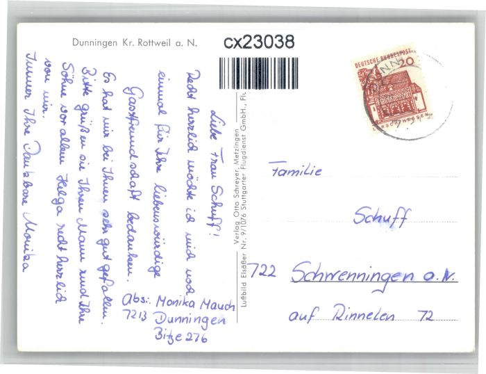 30751770 alte Postkarte Dunningen Wuerttemberg Dunningen Fliegeraufnahme postalisch gelaufen KatCode: 11110008325014