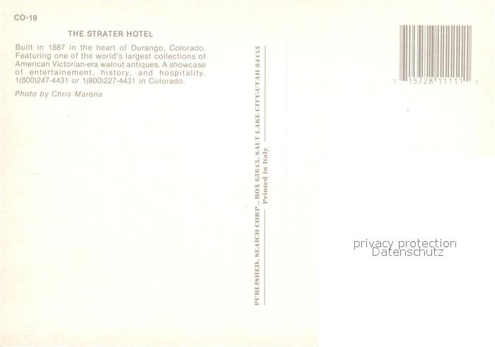 72964712 Durango Colorado Strater Hotel Diamond Belle Saloon postalisch nicht gelaufen Erhaltung siehe scans [FriedD77] KatCode: 14140060000000