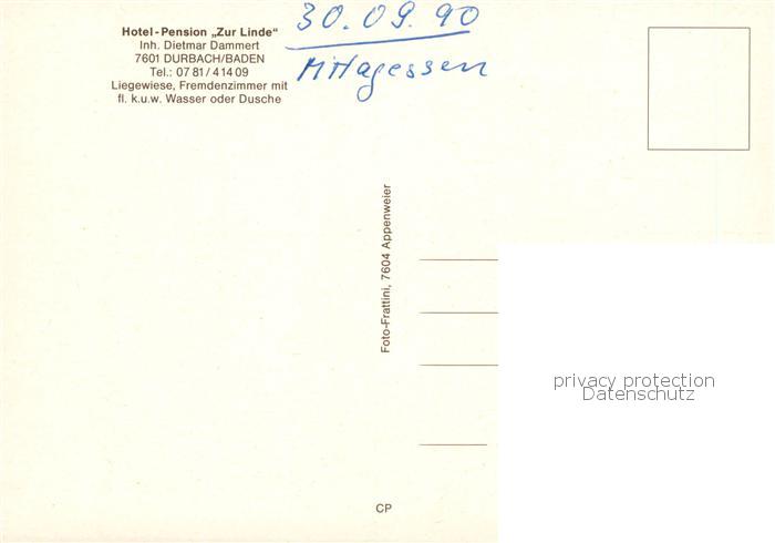 73844929 Durbach Hotel Pension Zur Linde postalisch nicht gelaufen Erhaltung siehe scans [FriedD77] KatCode: 11110008317021
