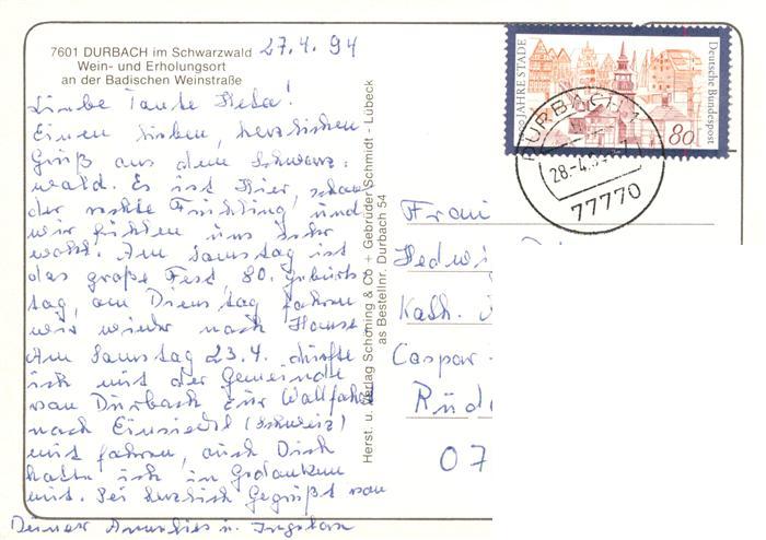73908718 alte Postkarte Durbach Schwarzwald Offenburg Fliegeraufnahme postalisch gelaufen Erhaltung siehe scans [WerneD78] KatCode: 11110008317021