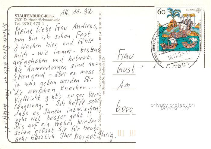 73229712 alte Postkarte Durbach Staufenburg-Klinik postalisch gelaufen Erhaltung siehe scans [NatalD47] KatCode: 11110008317021