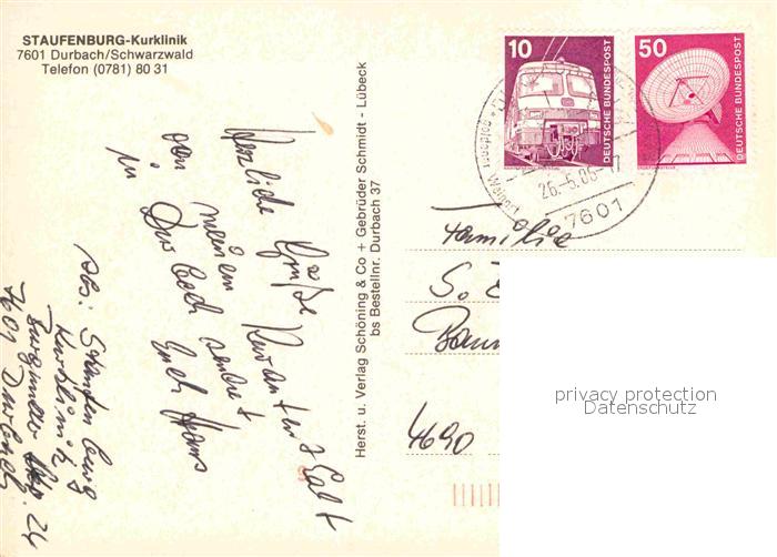72888908 alte Postkarte Durbach Staufenburg Klinik postalisch gelaufen Erhaltung siehe scans [AndreD76] KatCode: 11110008317021