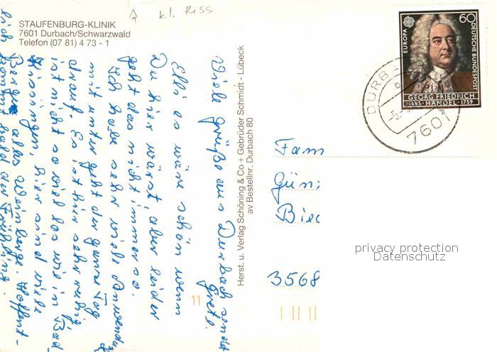 72882952 alte Postkarte Durbach Staufenburg Klinik postalisch gelaufen Erhaltung siehe scans [AndreD76] KatCode: 11110008317021