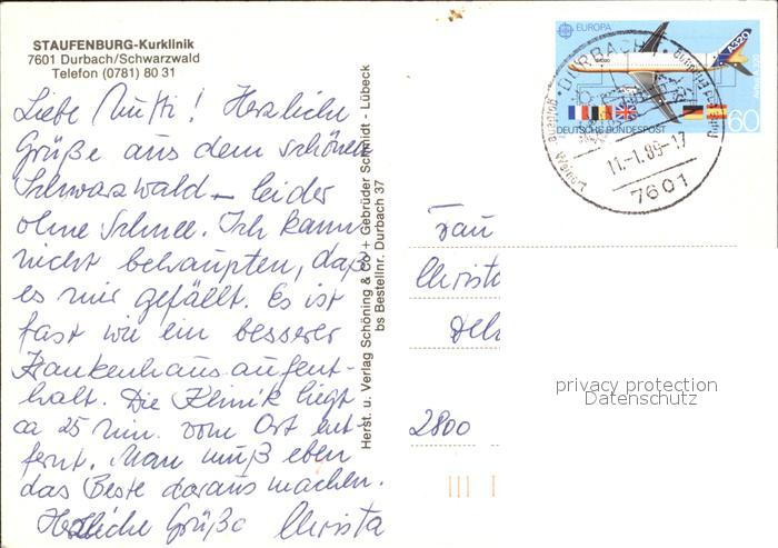 72156827 alte Postkarte Durbach Staufenburg Kurklinik postalisch gelaufen Erhaltung siehe scans KatCode: 11110008317021