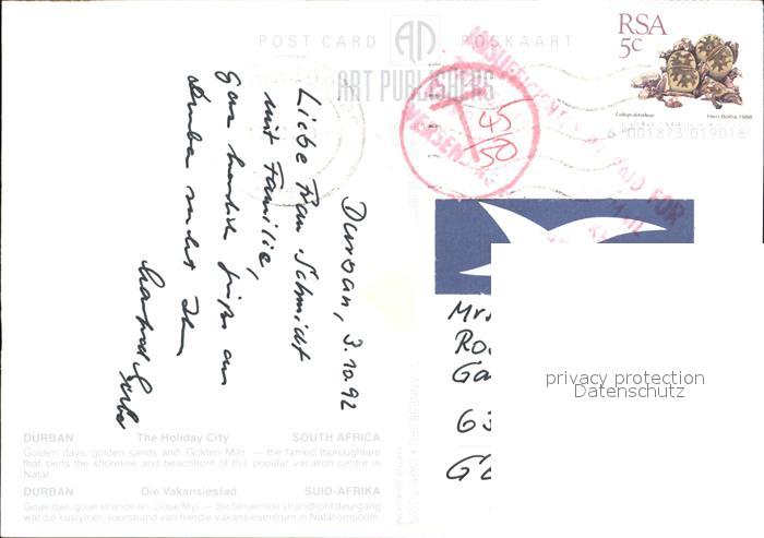 alte Postkarte Durban South Africa Fliegeraufnahme Strand postalisch gelaufen Erhaltung siehe scans