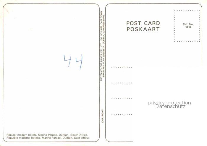 Durban South Africa Popular Hotels Marine Parade postalisch nicht gelaufen Erhaltung siehe scans [WerneD78]