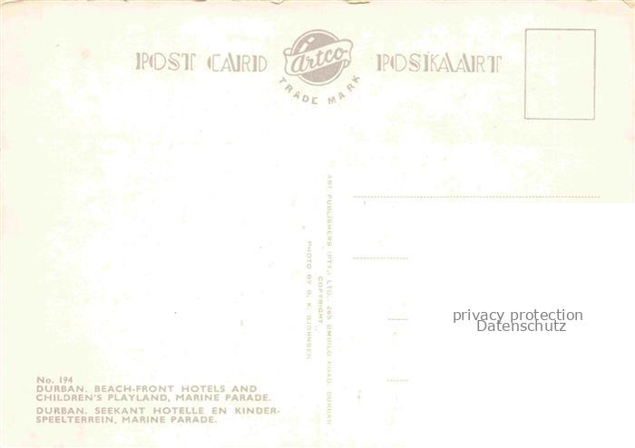 74028351 Durban Southafrica RSA Beach Front Hotels and Childrens Playland Marine Parade postalisch nicht gelaufen Erhaltung siehe scans [WerneD78] KatCode: 18460
