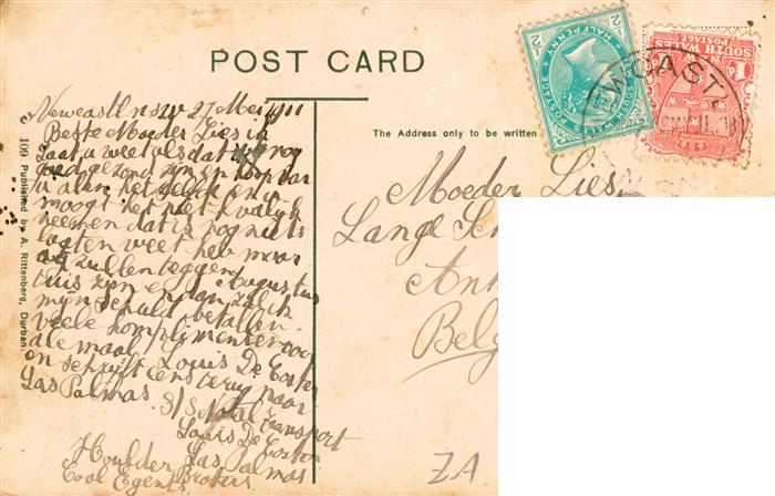 73958561 old postcard Durban Southafrica RSA Smith Street showing the National Bank postalisch gelaufen Erhaltung siehe scans [FriedD77] KatCode: 18460