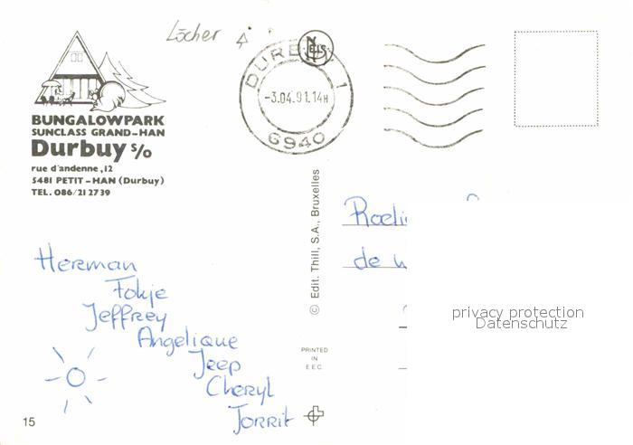 72868548 carte postale Durbuy Bungalowpark Sunglass Grand Han Schloss Hallenbad postalisch gelaufen Erhaltung siehe scans [WerneD78] KatCode: 11070083002818