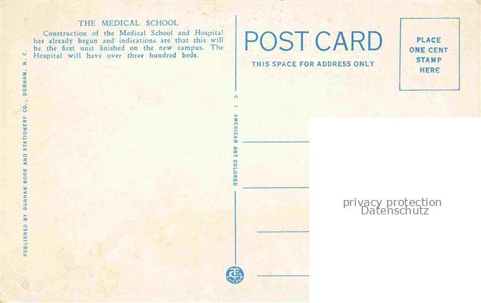 74033522 Durham UK The Medical School Duke University Illustration postalisch nicht gelaufen Erhaltung siehe scans [FriedD77] KatCode: 11570UKC1C14UE