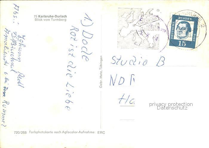 72105095 alte Postkarte Durlach Blick vom Turmberg postalisch gelaufen Erhaltung siehe scans KatCode: 11110008212000