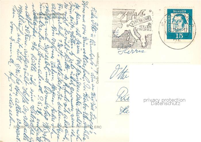 73776106 alte Postkarte Durlach Blick vom Turmberg postalisch gelaufen Erhaltung siehe scans [WerneD78] KatCode: 11110008212000