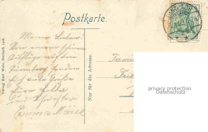 74083179 alte Postkarte Durlach Karlsruhe Baden Turmberg mit Drahtseilbahn postalisch gelaufen Erhaltung siehe scans [WerneD78] KatCode: 11110008212000