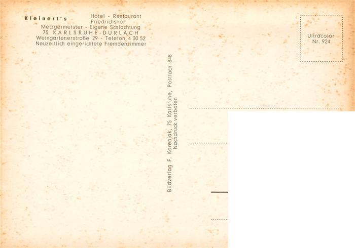 73871674 Durlach Kleinerts Restaurant Hotel Friedrichshof Reiten postalisch nicht gelaufen Erhaltung siehe scans [FriedD77] KatCode: 11110008212000