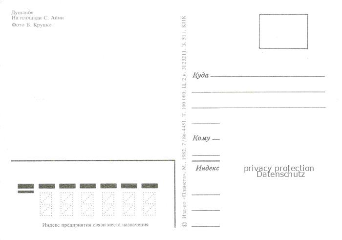 74042183 Duschanbe Platz S. Ajni postalisch nicht gelaufen Erhaltung siehe scans [IrynaD87] KatCode: 12320