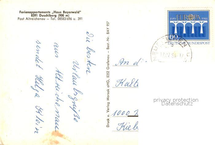 73119859 alte Postkarte Duschlberg Hauzenberg Appartements Haus Bayerwald postalisch gelaufen Erhaltung siehe scans [LiesaD40] KatCode: 11110009275126