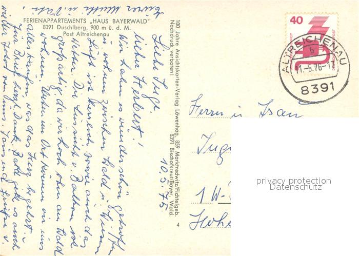 73653084 alte Postkarte Duschlberg Neureichenau Ferienappartements Haus Bayerwald postalisch gelaufen Erhaltung siehe scans [WerneD78] KatCode: 11110009272136