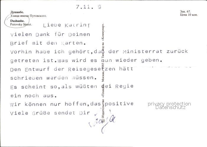 Dushanbe Putovsky Street postalisch nicht gelaufen Erhaltung siehe scans