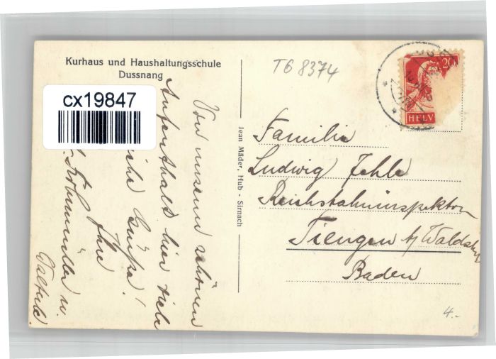 10738182 alte Postkarte Dussnang Kurhaus postalisch gelaufen KatCode: 11470200625582