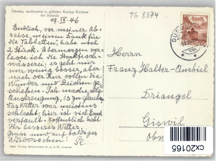 10738184 alte Postkarte Dussnang [Stempelabschlag] Kneipp Kurhaus postalisch gelaufen KatCode: 11470200625582
