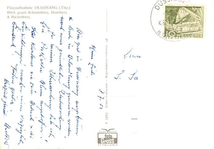 13874814 alte Postkarte Dussnang TG Fliegeraufnahme mit Schauenberg Haselberg und Hackenberg postalisch gelaufen Erhaltung siehe scans [WerneD78] KatCode: 11470200625582