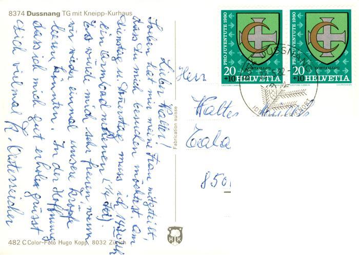 13875948 alte Postkarte Dussnang TG mit Kneipp Kurhaus Panorama Kirche Park postalisch gelaufen Erhaltung siehe scans [WerneD78] KatCode: 11470200625582
