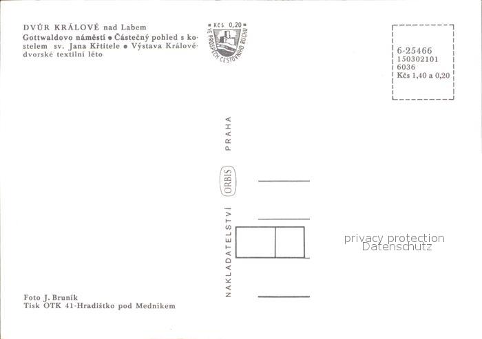 Dvur Kralove nad Labem Gottwaldovo namesti Kostelem Vystava Kralovedvorske textilni leto postalisch nicht gelaufen Erhaltung siehe scans