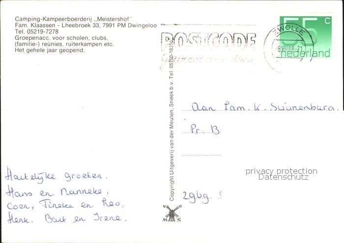 old postcard Dwingeloo Camping Meistershof Klaassen postalisch gelaufen Erhaltung siehe scans
