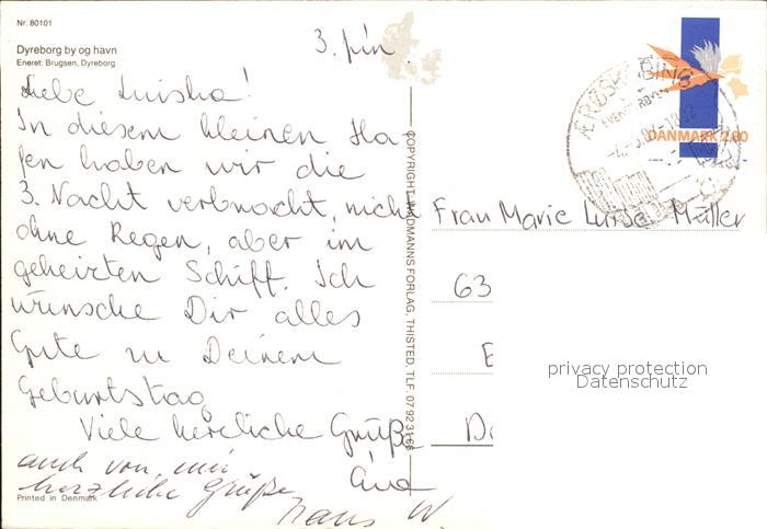 old postcard Dyreborg Havn postalisch gelaufen