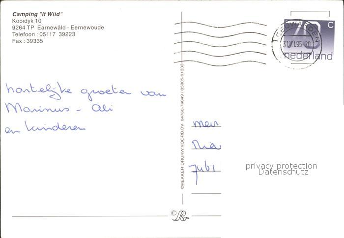 old postcard Earnewald Friesland Camping It Wiid Kinderspielplatz Segelboot postalisch gelaufen Erhaltung siehe scans