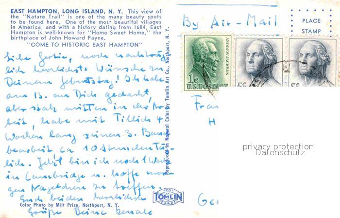 72627623 old postcard East Hampton New York Nature Trail postalisch gelaufen Erhaltung siehe scans [WerneD78] KatCode: 14140340000000