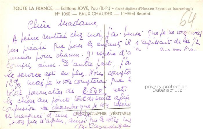 13575090 Eaux-Chaudes Les Hotel Baudot postalisch nicht gelaufen Erhaltung siehe scans [WerneD78] KatCode: 11170064264320