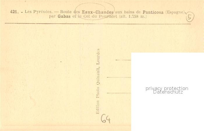 13554082 Eaux-Chaudes Les Route aux bains de Panticosa par Gabas et le Col du Pourtalet postalisch nicht gelaufen Erhaltung siehe scans [WerneD78] KatCode: 11170064264320