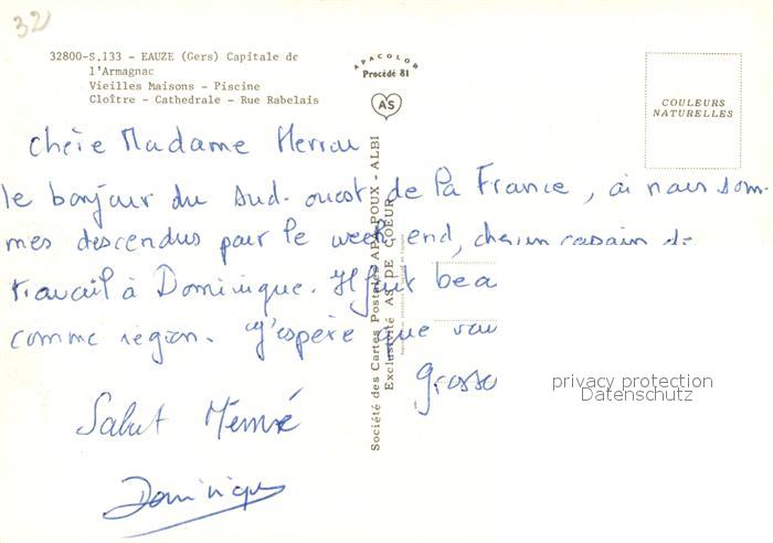 13580945 Eauze Capitale de l’Armagnac Vieilles Maisons Piscine Cloitre Cathedrale Rue Rabelais postalisch nicht gelaufen Erhaltung siehe scans [WerneD78] KatCode: 11170032232119