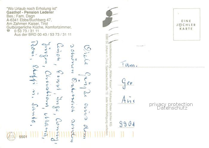 73066348 alte Postkarte Ebbs Buchberg Gasthaus Pension Lederer postalisch gelaufen Erhaltung siehe scans [KathaD81] KatCode: 11390335070508