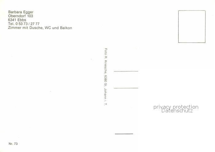 72699912 Ebbs Gaestehaus am Kaiser Fremdenzimmer postalisch nicht gelaufen Erhaltung siehe scans [FriedD77] KatCode: 11390335070508