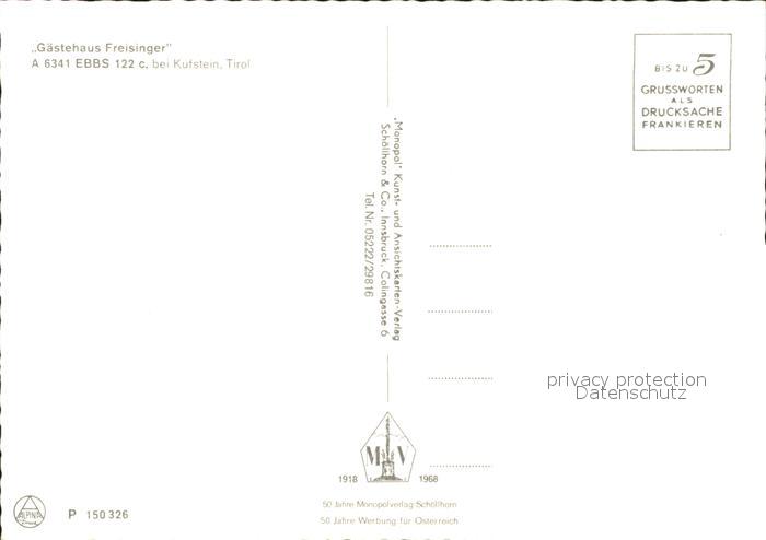 42923844 Ebbs Gaestehaus Freisinger postalisch nicht gelaufen Erhaltung siehe scans [WerneD48] KatCode: 11390335070508