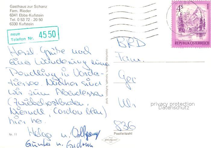 73492678 alte Postkarte Ebbs Gasthaus zur Schanz Gaststube postalisch gelaufen Erhaltung siehe scans [WerneD78] KatCode: 11390335070508