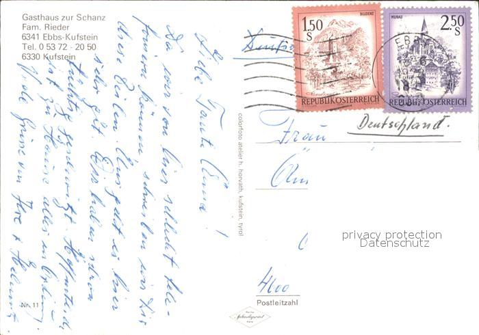 71955967 alte Postkarte Ebbs Gasthaus zur Schanz Stube postalisch gelaufen Erhaltung siehe scans KatCode: 11390335070508
