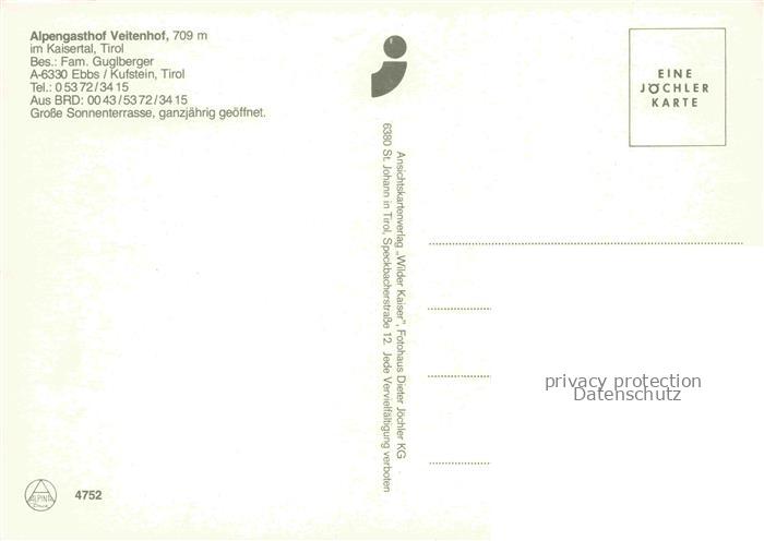 74109611 Ebbs Kufstein Tirol AT Alpengasthof Veitenhof im Kaisertal postalisch nicht gelaufen Erhaltung siehe scans [WerneD78] KatCode: 11390335070508