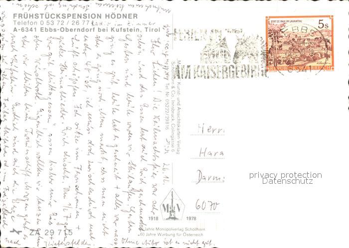 42923838 alte Postkarte Ebbs Pension Hoedner Gaststube Zimmer postalisch gelaufen Erhaltung siehe scans [WerneD48] KatCode: 11390335070508