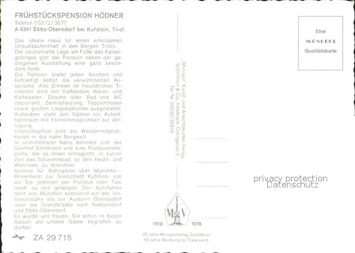 72241944 Ebbs Pension Hoedner postalisch nicht gelaufen Erhaltung siehe scans KatCode: 11390335070508
