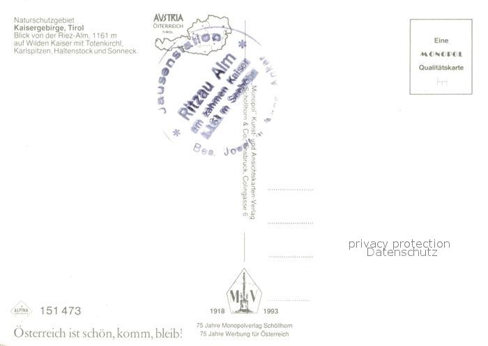 73028888 Ebbs Ritzau-Alm Wilder Kaiser Totenkirchl Karlspitzen postalisch nicht gelaufen Erhaltung siehe scans [PaolaD17] KatCode: 11390335070508