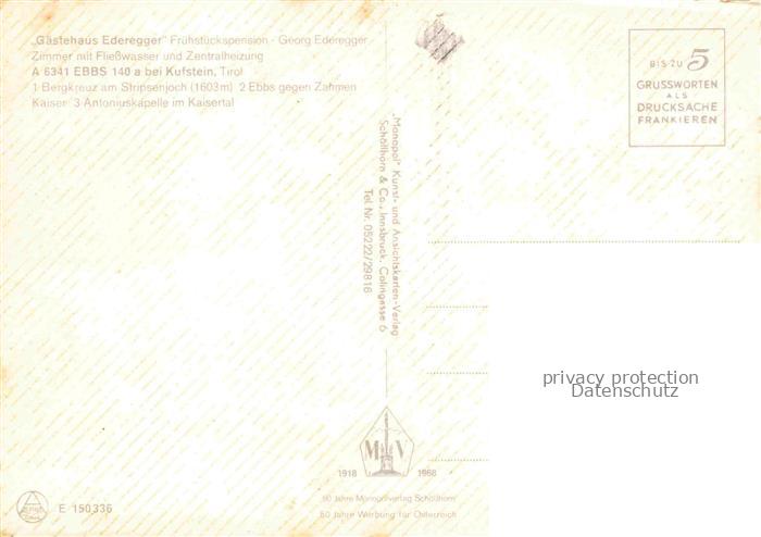 74013664 Ebbs Tirol AT Gaestehaus Pension Ederegger Bergkreuz Stripsenjoch Kaisergebirge Autoniuskapelle postalisch nicht gelaufen Erhaltung siehe scans [FriedD77] KatCode: 11390335070508