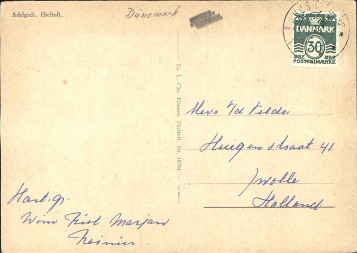 old postcard Ebeltoft Adelgade postalisch gelaufen gute Erhaltung