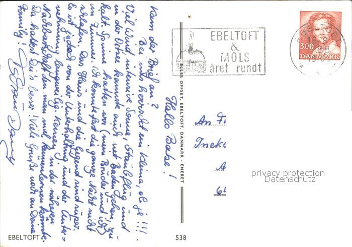 old postcard Ebeltoft Fliegeraufnahme Hafen postalisch gelaufen Erhaltung siehe scans