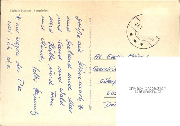 old postcard Ebeltoft Museum Postgarden postalisch gelaufen Erhaltung siehe scans