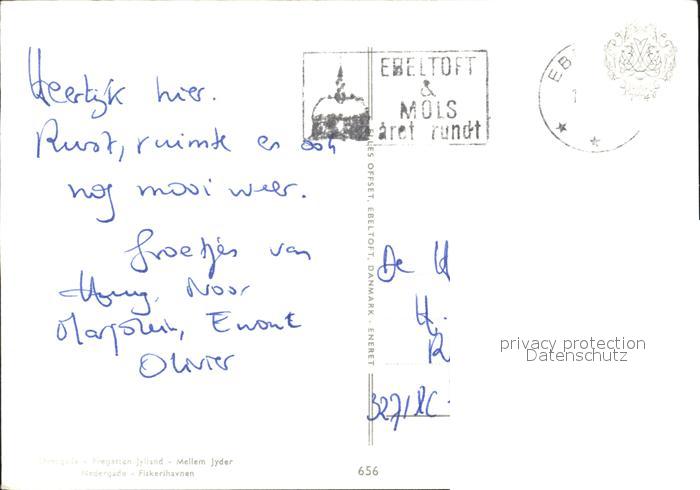 old postcard Ebeltoft Overgade Fregatten Jylland Mellem Jyder Nedergade Fiskerihavnen postalisch gelaufen Erhaltung siehe scans