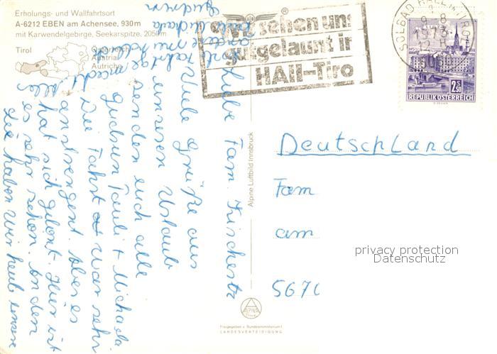 73049200 alte Postkarte Eben Achensee Fliegeraufnahme Karwendelgebirge Seekarspitze postalisch gelaufen Erhaltung siehe scans [KathaD81] KatCode: 11390335070907