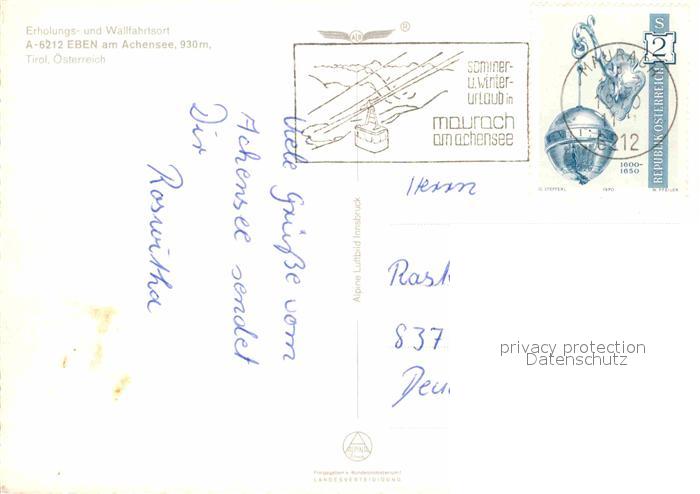 72696905 alte Postkarte Eben Achensee Luftaufnahme postalisch gelaufen Erhaltung siehe scans [KathaD79] KatCode: 11390335070907